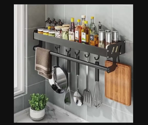 Libérez votre plan de travail ! Cette étagère murale vous permet de ranger vos condiments, ustensiles et petits accessoires tout en gardant une cuisine bien organisée et aérée.